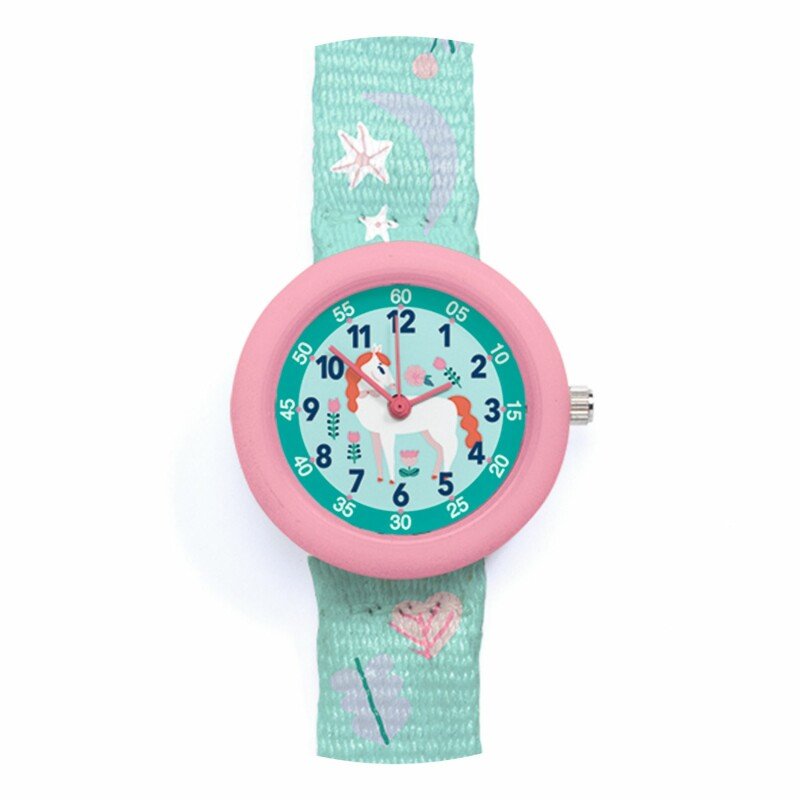 - Elegantiškas, spalvingas laikrodis, skirtas smagiai praleisti laiką ir išmokti atpažinti laiką. Jis turi lavinamąjį ekraną, poliesterio dirželį, be to jis veikia itin tyliai.
