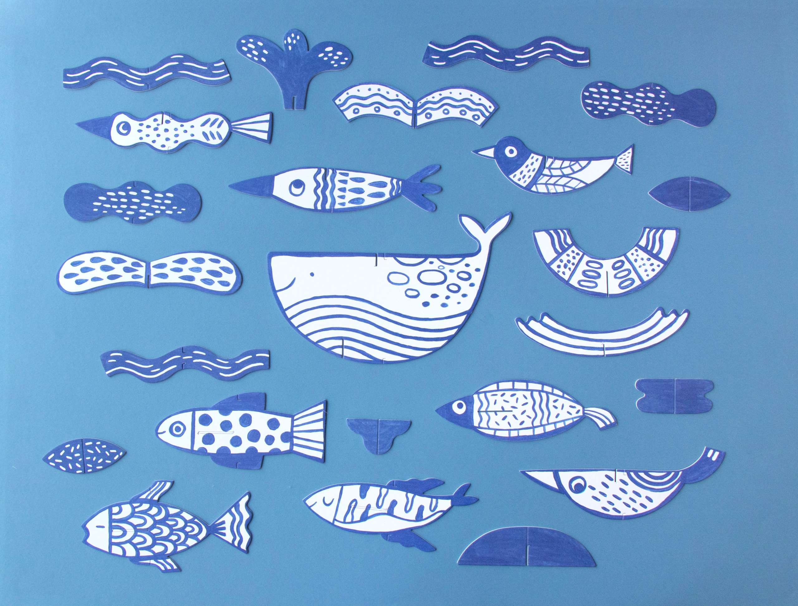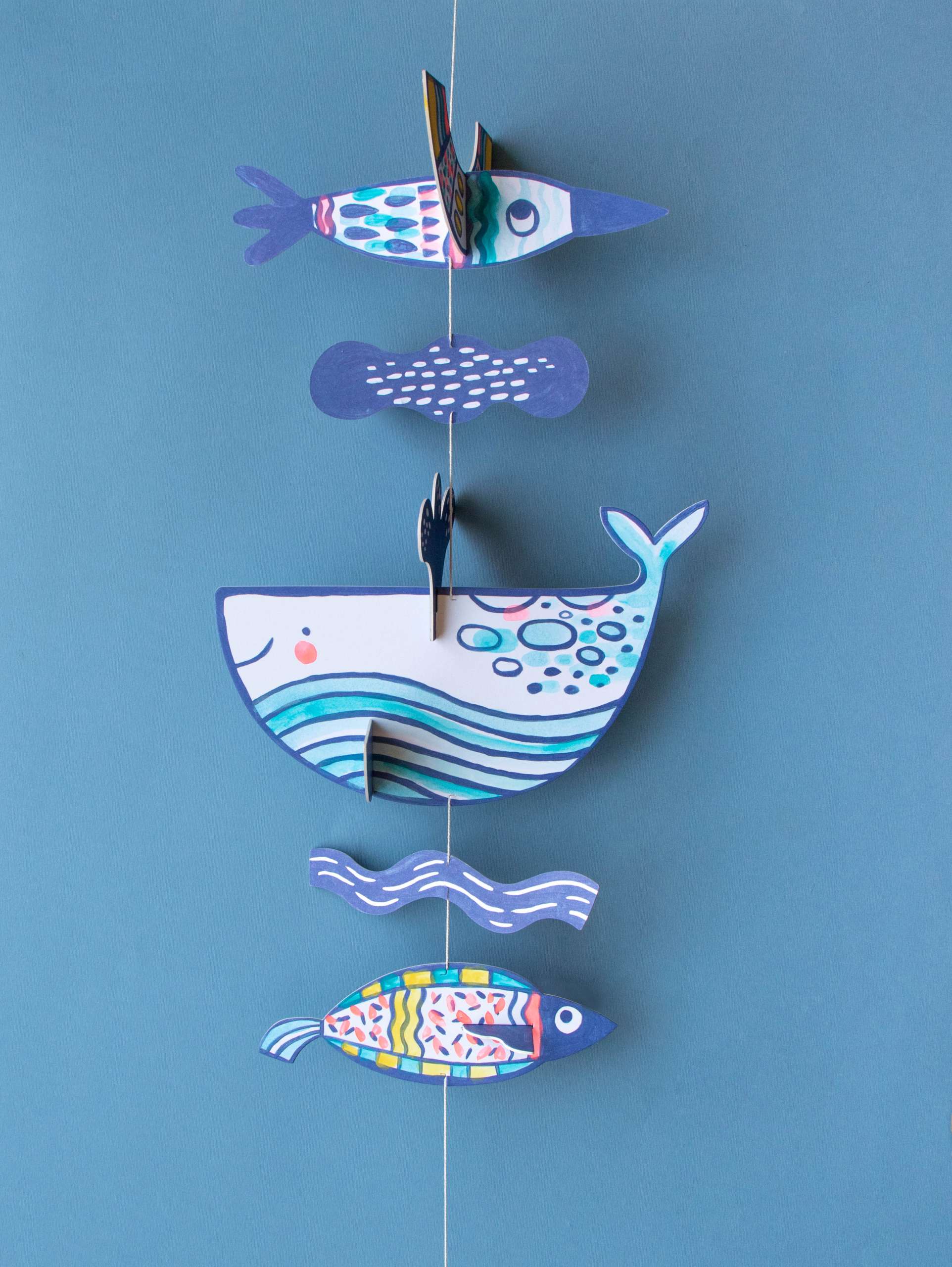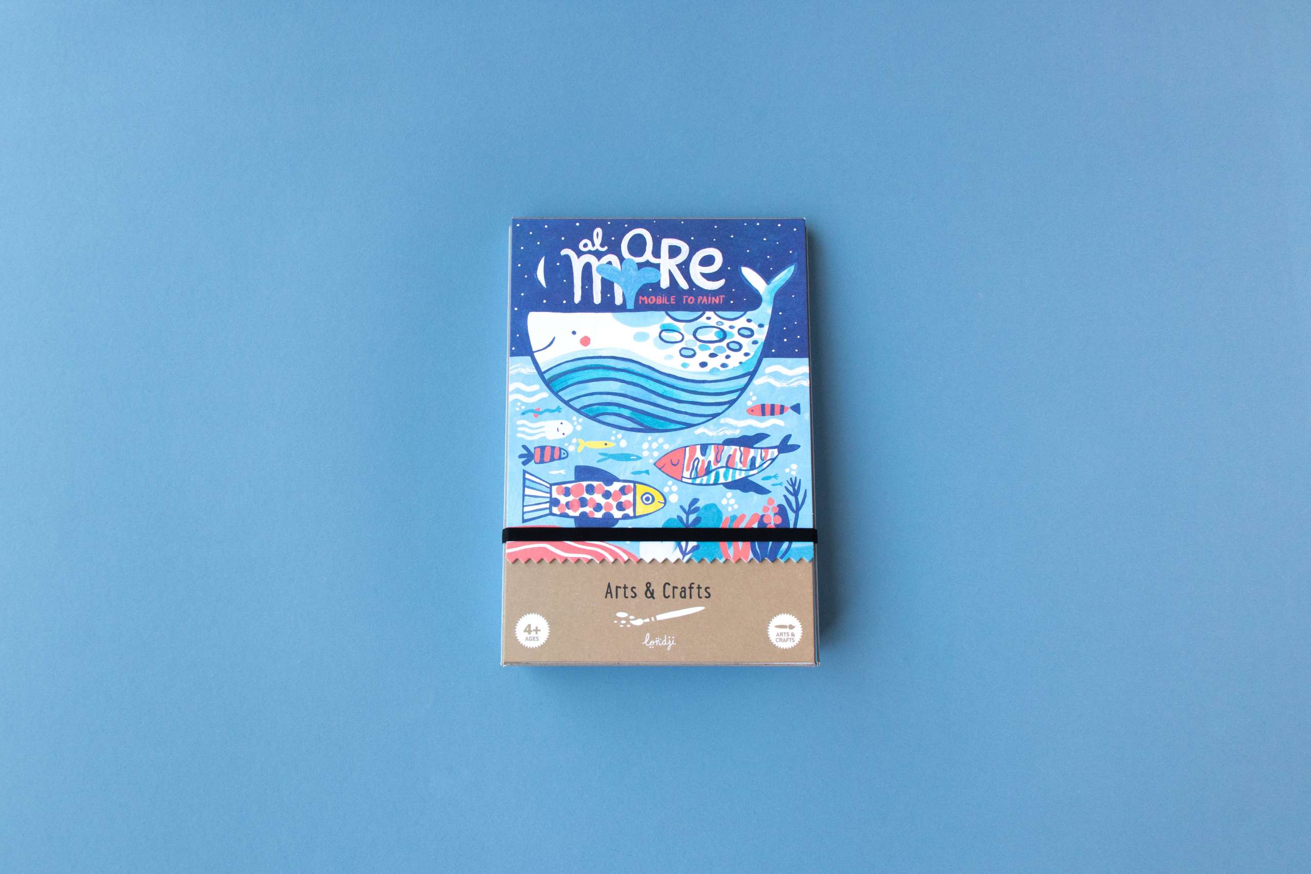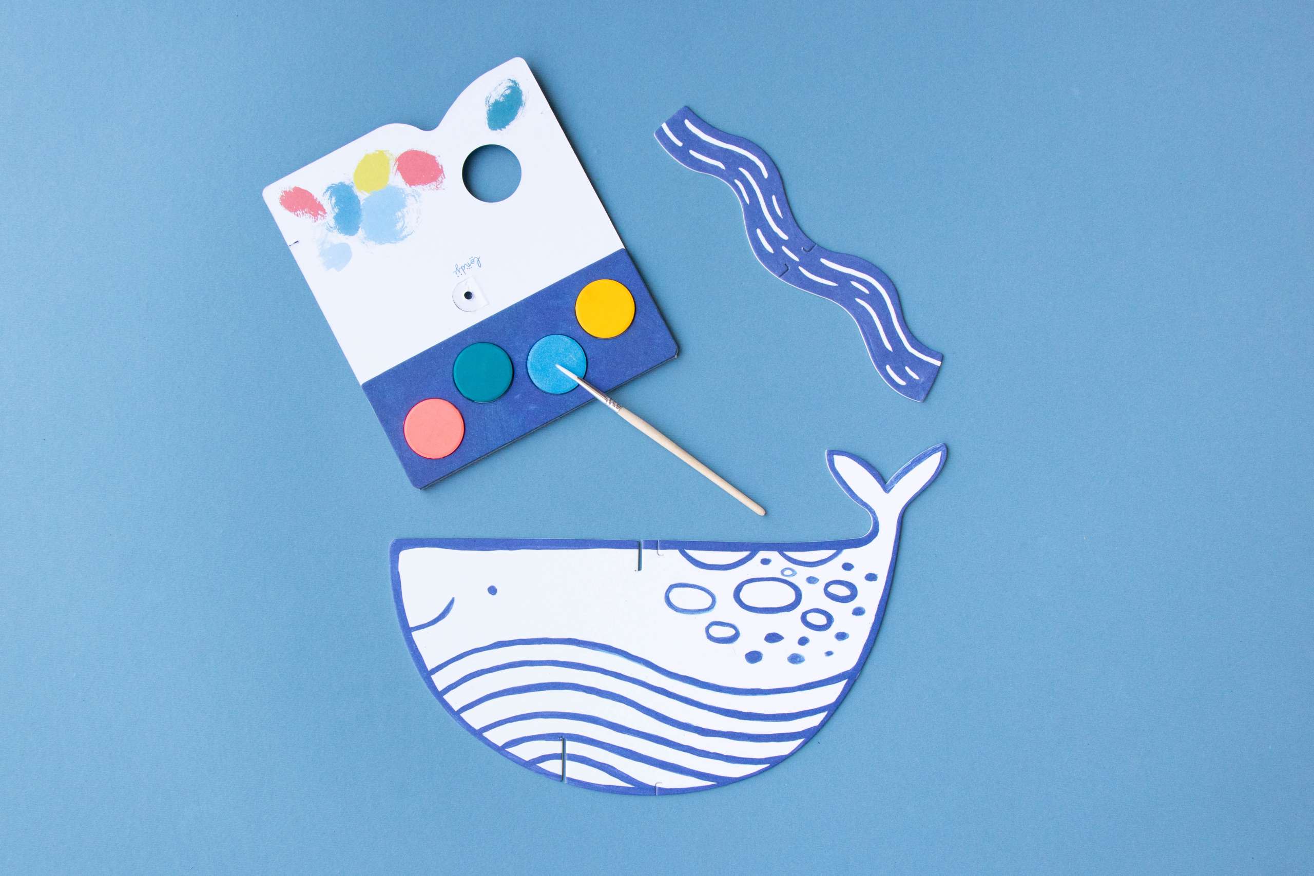 - Rinkinyje yra 2 metrų siūlas, 1 teptukas, kartoniniai jūros gyventojai ir akvarelė.