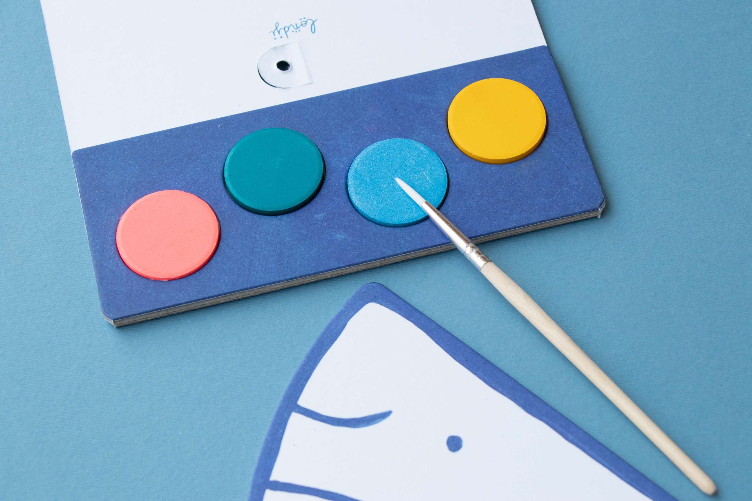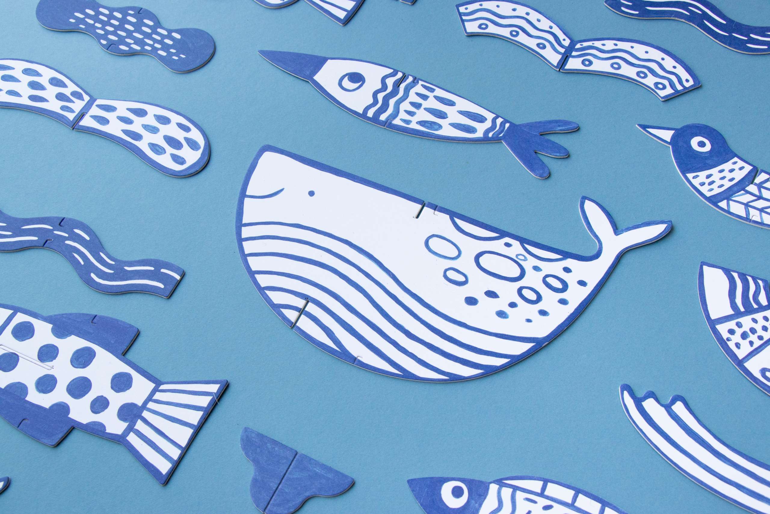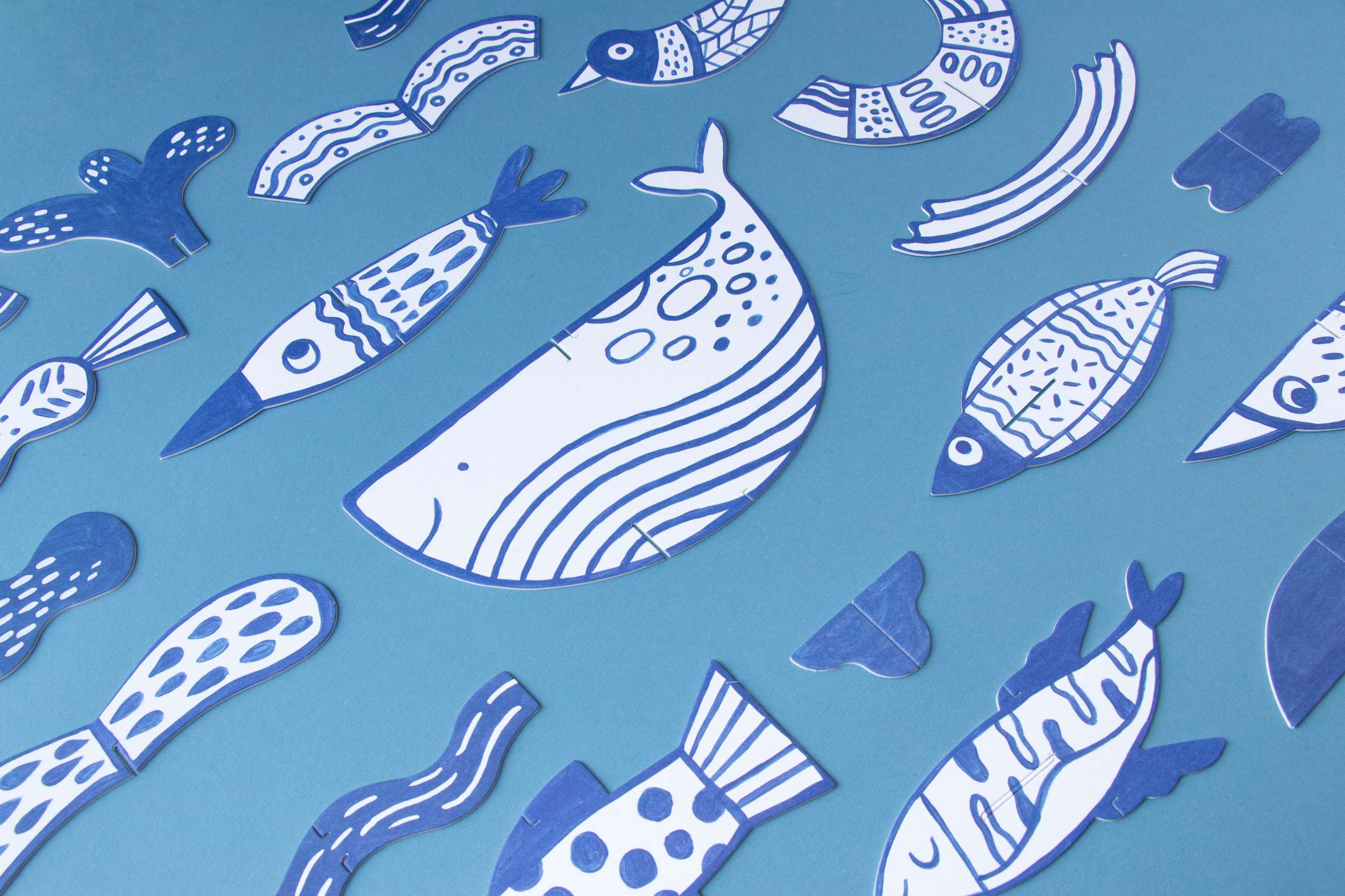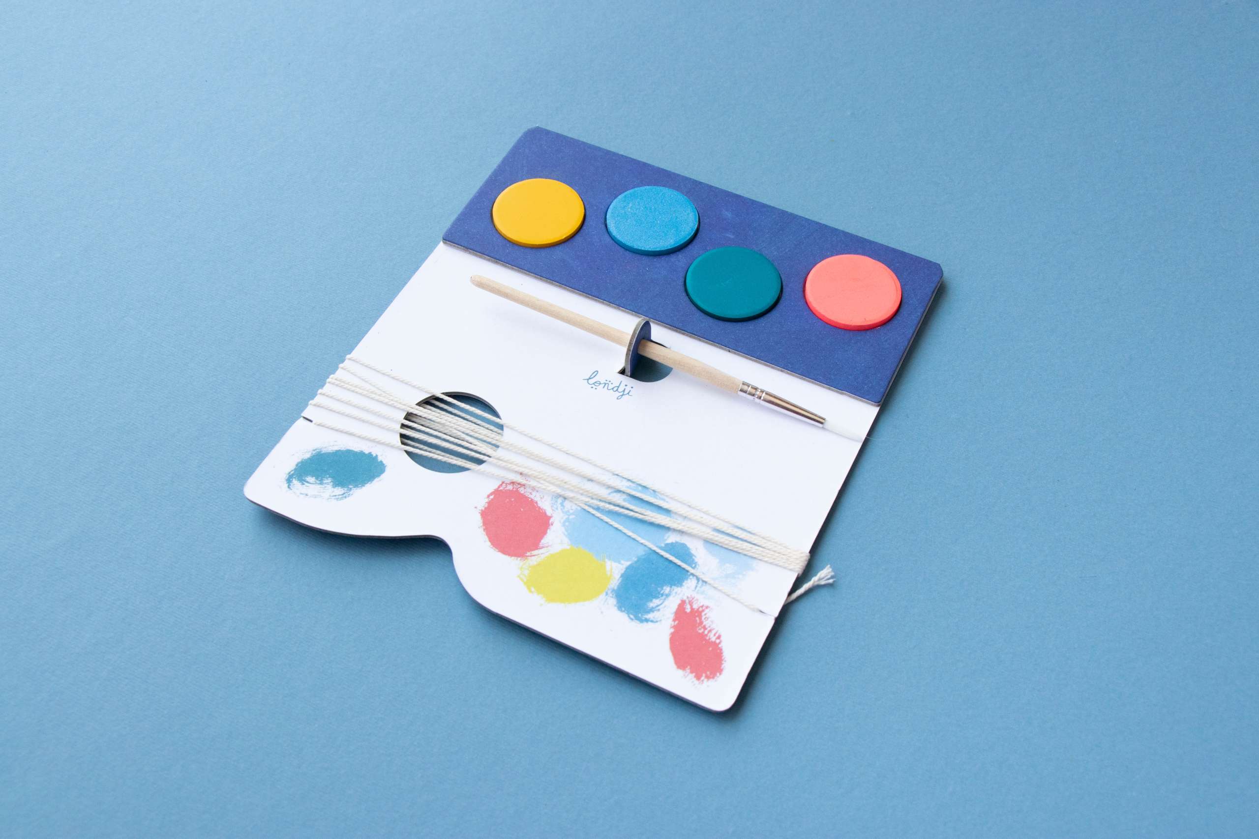 - Rinkinyje yra 2 metrų siūlas, 1 teptukas, kartoniniai jūros gyventojai ir akvarelė.