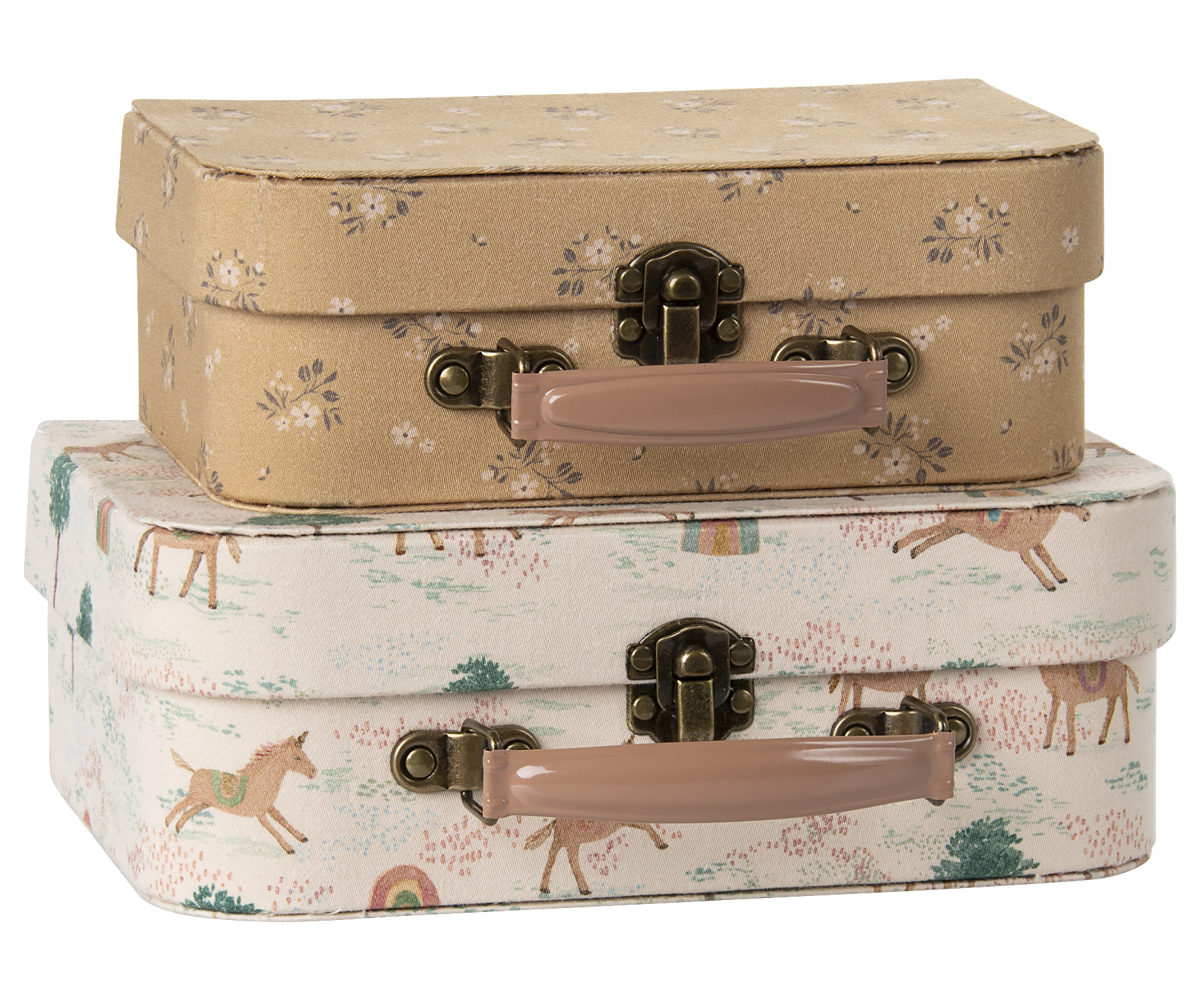 - Dviejų lagaminų rinkinys, mylimiems žaisliukams susidėti. Puikiai tinka Maileg peliukams laikyti.